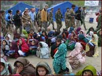 نسیمہ اور اس کے ساتھ کے سینکڑوں بچوں کی نگاہیں آنے والے مہمانوں کے بجائے اپنی ٹیچر کی طرف ہیں جیسے ہی اشارہ ہوا۔ فضا ننھے منے ہاتھوں کی تالیوں سے گونج گئی۔ جان کیری اور اسلام آباد میں متعین امریکی سفیر رائن سی کروکر کو اس میز کے برابر کھڑا کیا گیا جس پر بچوں میں تقسیم کرنے کے لیے یونیفارم کے پیکٹ رکھے گئے ہیں۔پیچھے پاک امریکہ دوستی کا بینر لگا ہوا ہے۔ کیمرے مسلسل جان کیری کو فوکس کیے ہوئے ہیں۔انہیں بریفنگ میں بتایا جارہا ہے کہ کس طرح اس کیمپ اور دیگر کیمپوں میں زلزلہ زدگان کو صحت، رہائش، خوراک اور تعلیم کی بھرپور سہولتیں فراہم کی جارہی ہیں اور ان کے سبب کس طرح اب تک جنگلیوں کی طرح پہاڑوں میں زندگی گزارنے والے لوگ جدید دنیا کی سہولتوں اور تہذیب سے پہلی مرتبہ آشنا ہورہے ہیں۔ زلزلے نے جہاں ان لوگوں کو بے گھر کیا وہیں انہیں بیرونی دنیا سے رابطے میں آنے کا بھی موقع دیا ہے۔ بچے اپنے بڑوں کو سکھا رہے ہیں کہ ٹائلٹ کیسے استعمال کیا جاتا ہے اور یہ وہ تبدیلی ہے جس کے ساتھ جب یہ پناہ گزیں پہاڑوں میں واپس جائیں گے تو امید یہ ہے کہ جو کچھ انہوں نے سیکھا ہے اسے اور اپنے محسنوں کو یاد رکھیں گے۔ یہ پوری گفتگو اور سوال و جواب کا سیشن جان کیری، امریکی سفیر، کیمپ کمانڈر اور لوکل بریگیڈ کمانڈر کے درمیان جاری ہے۔ متاثرین کا کوئی نمائندہ اس احاطے میں موجود نہیں ہے۔ جان کیری کا متاثرین سے واحد براہ راست رابطہ نسیمہ کی شکل میں ہورہا ہے۔اس چار سالہ گڑیا کو اسکی ٹیچر نے جان کیری کے سامنے کھڑا کردیا ہے تاکہ جان کیری اسکا گال تھپتھپا سکیں اور اپنے ہاتھ سے کیمروں کی کلک کلک میں یونیفارم کا پیکٹ دے سکیں۔ ٹیچر کے ایک اشارے پر فضا بچوں کی آواز سے گونج گئی۔