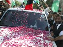 اسی دن پاکستانی چینل پر معطل چیف جسٹس کے جلوس کی فوٹیج دیکھ کر میری میکسیکن ہمسائی نے مجھ سے پوچھا کیا آج پاکستان میں بھی ’سنکو ڈی مایو‘ ہے؟ اسی دن پاکستان کے چیف جسٹس جرنیلی سڑک پر جرنیلوں کو اخلاقی شکست سے ہمکنار کر چکے تھے۔ گوجر خان سے لاہور تک کے درمیاں لاٹھی چارج، آنسو گیس، گولی اور آتشزنی کے باوجود ہزاروں لوگوں کا والہانہ استقبال واقعی ایک ریفرنڈم تھا جو کسی بھی مہذب معاشرے میں مرغوں کو اپنے ڈربوں اور فوج کو بیرکوں میں جانے پر مجبور کردیتا لیکن یہ پیارا پاکستان تھا جہاں جرنیلوں کی مضبوط ناک اور انا پر عوامی خواہشات اور ملکی مفادات کی بلی چڑھائي جاتی ہے۔ صدیوں سالوں سے اسی پنجاب اور اسکی جرنیلی سڑک پر سے بڑے بڑے دبنگ، ظالم اور جابر فاتح اور حکمران گزرے ہیں، ہاتھیوں اور ساتھیوں کے جلو میں تیر، تفنگ، توپیں اور مارشل لائيں اور مارشل لاء نما مصبتیں لیے، لیکن عوامی قافلوں کے پیچھے اٹھتی ہوئی دھول میں غائب ہوگئے۔ ان کے برعکس وہ جو لوگوں کے دلوں میں ہیں داستانوں کے روپ میں دائم رہے ہیں دریائے جہلم و سندھ کی طرح۔ شاید سرائے عالمگیر سے لیکرسندھ ، اورپشاور سے بولان تک چیف جسٹس چودھری افتخار محمد اب ایک عوامی کردار بنا ہوا ہے۔