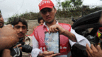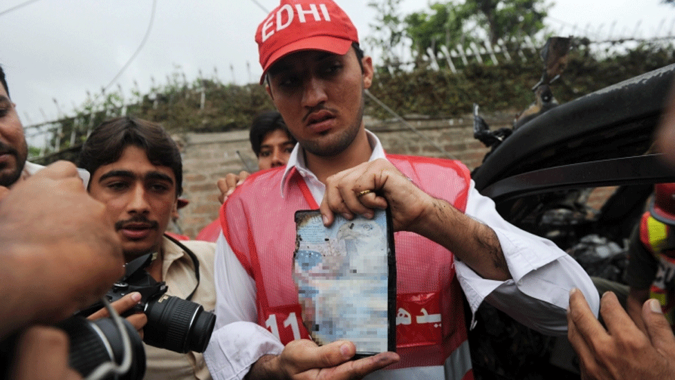 • ایک امدادی کارکن جائے وقوع سے ملنے والے ایک غیر ملکی پاسپورٹ دکھا رہا ہے