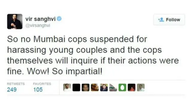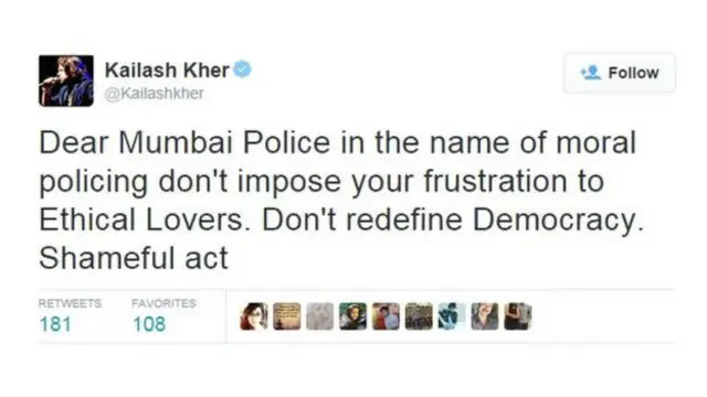 ممبئی میں مختلف ہوٹلوں سے کئی جوڑوں کو ’غیر اخلاقی طرز عمل‘ کے الزام میں گرفتار کرنے پر مختلف اخباروں اور سوشل میڈیا پر ممبئی پولیس پر شدید تنقید کی جا رہی ہے۔