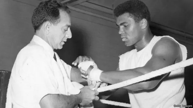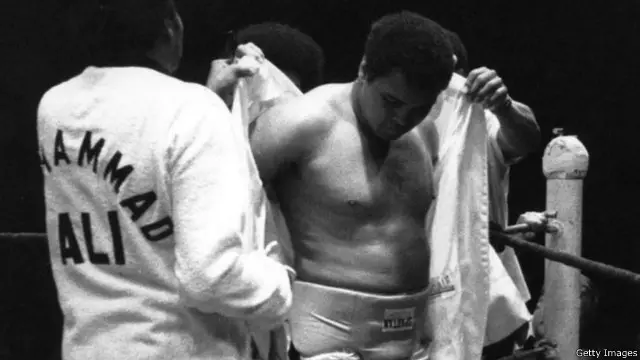 محمد علی مقابلہ شروع ہونے سے پہلے رنگ میں تیاری کرتے ہوئے۔