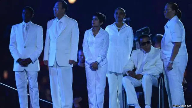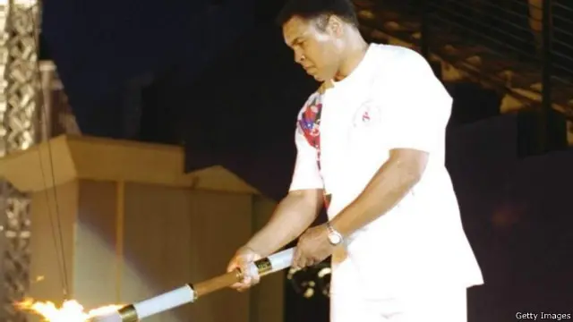 2012 میں لندن میں ہونے والے اولمپکس مقابلوں کی افتتاحی تقریب میں محمد علی نے شرکت۔ اس تصویر میں اقوام متحدہ کے سیکرٹری جنرل بان کی مون بھی موجود ہیں۔