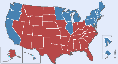 امریکی انتخابات میں اکاون ریاستوں ریپبلیکن پارٹی اور ڈیموکریٹ پارٹی کے حصے میں کونسی ریاستیں آئیں۔