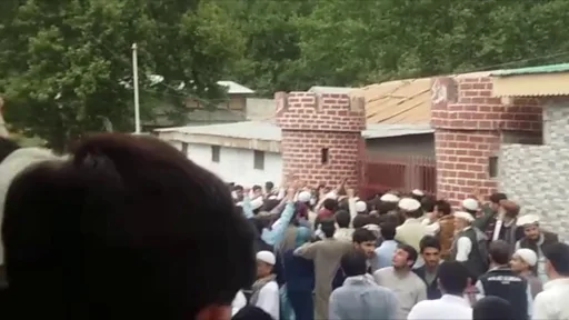 مقامی لوگوں نے بتایا کہ مشتعل لوگوں نے تھانے کا گھیراؤ کیا اور تھانے کے گیٹ کو توڑنے کی کوشش کی ہے۔