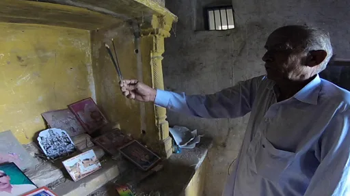 گھنشام تقریباً نابینا ہیں۔ پوجا شروع کرنے سے قبل ماچس کے ذریعے اگربتی جلانے کے لیے انھیں کچھ مشکل تو ہوئی لیکن ان کی ایک دو مرتبہ کوشش کے بعد اگربتی جلنے لگی۔ جس کے دھوئیں کے پچھے سے اُن کا دھندلایا ہوا چہرہ نظر آ رہا ہے۔