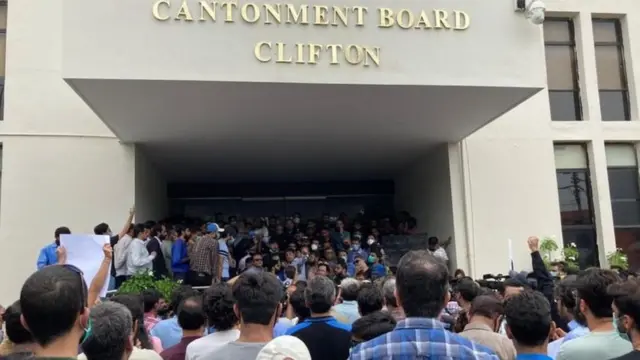 کراچی میں کلفٹن کنٹونمنٹ بورڈ کے باہر مظاہرہ کرنے والوں پر ’دہشتگردی‘ کا مقدمہ