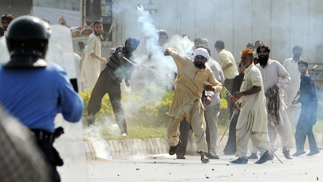 بی بی سی کے نامہ نگار کے مطابق پولیس مظاہرین پر قابو پانے میں بے بس دکھائی دے رہی ہےاسلام آْباد