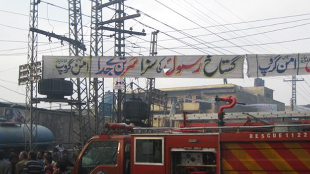 تاہم اس موقع پر کچھ لوگوں نے قریب ہی واقع زینب مارکیٹ میں دوکانیں بند کرانے کی کوشش کی اور پتھراؤ کیا جسے سے وہاں کھڑی گاڑیوں کے شیشے ٹوٹ گئے جبکہ دوکانوں کو بھی جزوی نقصان پہنچا۔