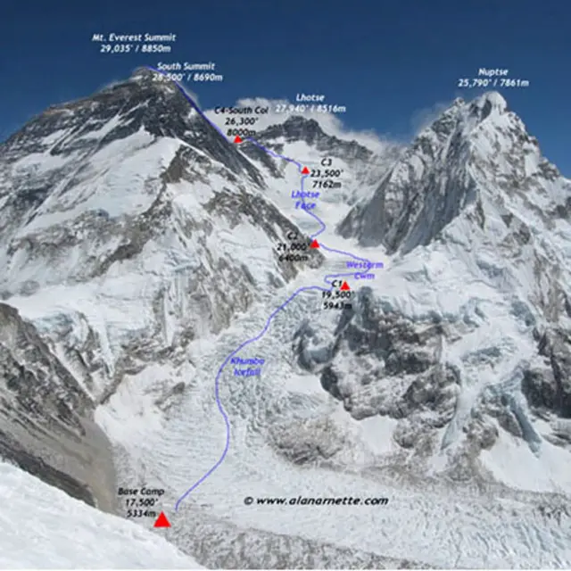 ماونٹ ایورسٹ دنیا کی بلند ترین چوٹی ہے اور یہ 8,848 میٹر بلند ہے۔ دنیا کی دوسری بلند ترین چوٹی کے ٹو پاکستان میں ہے جس کی بلندی 8611 میٹر ہے۔