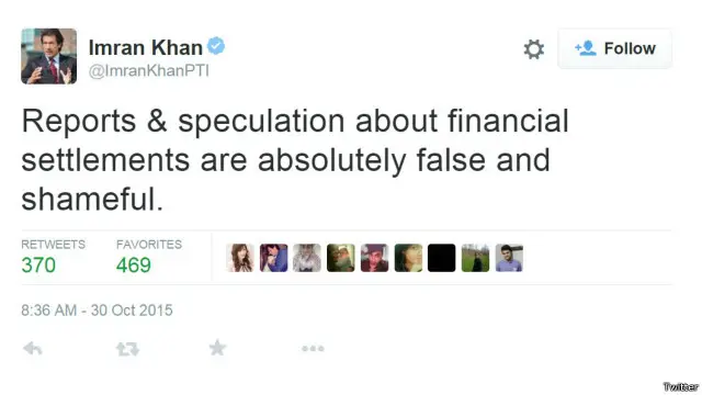 عمران خان اور ریحام خان نے اس کی تردید کی تھی اور اس کے بعد پی ٹی آئی کے سوشل میڈیا اور عمران خان کے ٹوئٹر اکاؤنٹ سے ان کی خوشگوار موڈ میں کئی تصاویر اور ویڈیوز جاری کی گئیں۔