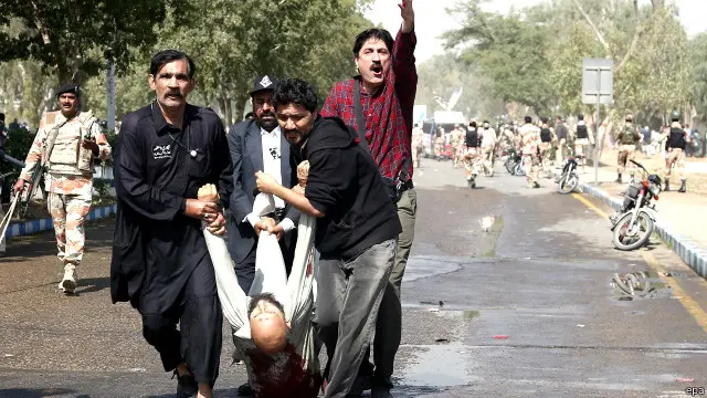 اس موقعے پر واٹر کینن بھی استعمال کی گئی اور حالات اس وقت مزید خراب ہو گئے جب ہجوم پر فائرنگ کی گئی جس کے باعث پی آئی اے کے دو ملازمین زخمی ہوئے۔