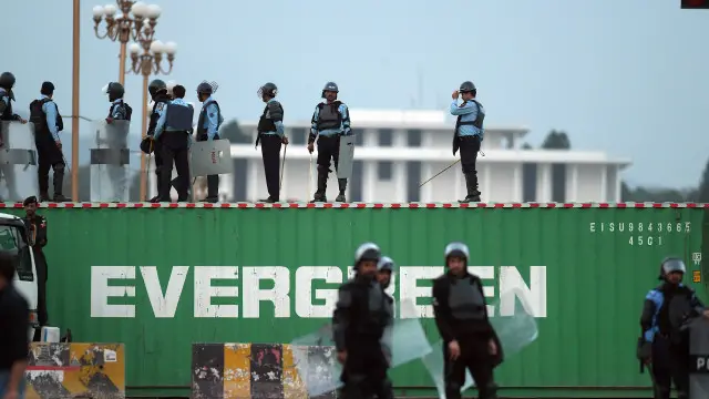 پولیس کے مطابق مظاہرین نے ریڈ زون میں آگ بجھانے والی دو گاڑیوں کو نذرِ آتش کر دیں اور توڑ پھوڑ کی۔