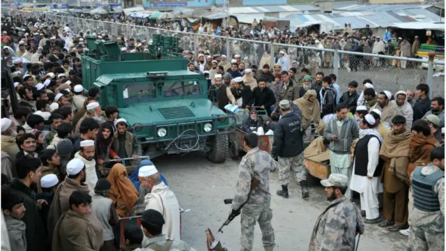 افغانستان جانے والے گاڑیوں کے اڈے پر لوگ جمع تھے لیکن گاڑیاں خاموش کھڑی تھیں انھیں انتطار ہے کہ یہ اطلاع پہنچے کہ راستہ کھل گیا ہے تو وہ گاڑیاں روانہ کریں گے ۔