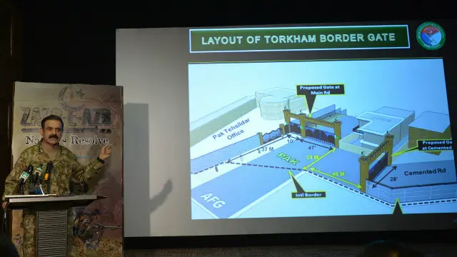پاک افغان سرحد طورخم پر کشیدگی کے حوالے سے بات کرتے ہوئے کہا کہ اب سرحدی کراسنگ پر تلاشی اور دستاویزات کی سختی سے چیکنگ کی جائے گی اور اسی مقصد کے تحت طورخم پر پاکستان کی حدود میں گیٹ نصب کرنے پر کام شروع کیا اور ایسا سول حکومت کے ساتھ مکمل مشاورت کے بعد کیا گیا۔