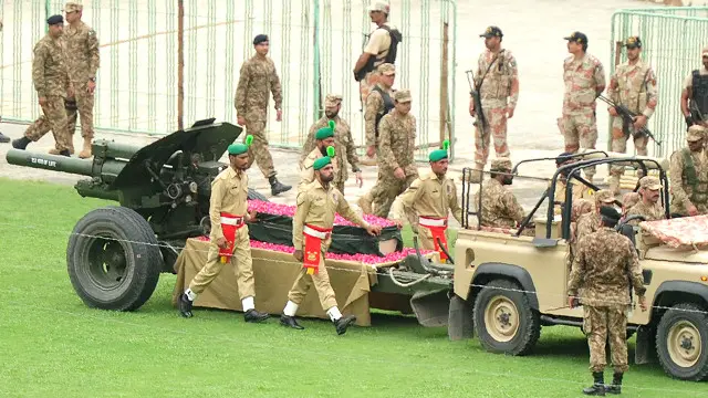 نماز اور دعا کے بعد پاک فوج زندہ باد کے نعرے لگائے گئے۔ فوج کے اہلکاروں نے فوج کے سربراہ جنرل راحیل شریف، صدر مملکت اور وزرائے اعلیٰ کو راستہ بنا کر دیا جبکہ لوگ میت کو کندھا دینے کے لیے بے چین تھے۔ اسی دوران دھماکے کی آواز آئی جس سے لوگ کے چہروں پر پریشانی کے آثار نمودار ہوئے، تاہم بعد میں پتہ چلا کہ توپوں کی سلامی پیش کی جا رہی ہے۔