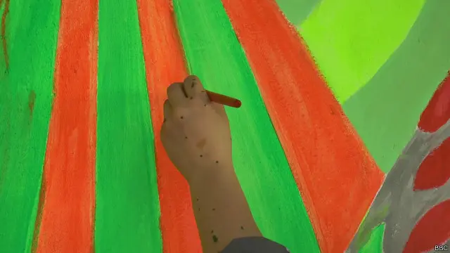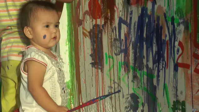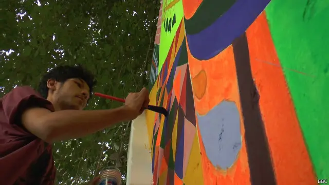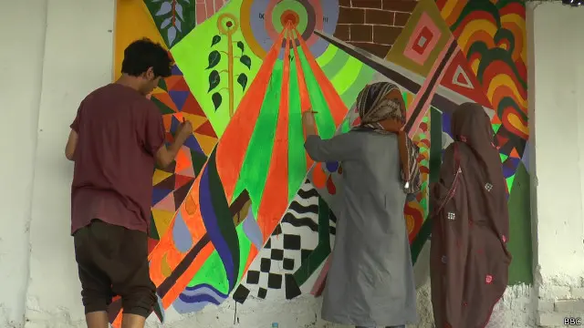 انھوں نے بتایا کہ ایک دیوار بچوں کے لیے مختص کی ہے تاکہ وہ اپنی سوچ اور جذبات کی عکاسی کریں اور اس مقصد کے لیے بچوں کے سامنے مختلف رنگ رکھے گئے۔