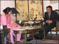 دبئی سے کیے جانے والے عزیز انصاری کے اس سوال کے جواب میں کہ آپ اب تک ملک کے مقبول ترین حکمراں ہیں لیکن آپ کی ایسی کیا مجبوری ہے کہ آپ پھر ان لوگوں کو ساتھ لے کر چل رہے ہیں جو بد عنوان ہیں یا جنہیں ماضی میں بد عنوان قرار دیا گیا ہے؟ انہوں نے کہا کہ ’ آپ کو خود بھی سوچنا چاہیے کہ میں ایسے لوگوں کو کیوں ساتھ لے کر چل رہا ہوں۔ کیونکہ اس وقت جو لوگ میرے ساتھ ہیں ان میں سے ایک بھی غیر منتخب نہیں ہے اور ان لوگوں کو پاکستان کے لوگوں نے منتخب کیا ہے۔ آپ منتخب کرنے والوں سے پوچھیں کہ انہوں نے ان لوگوں کو کیوں منتخب کیا ہے جو بدعنوان ہیں۔ پھر اس وقت ملک میں ایک مخلوط حکومت ہے آخر اس کی ضرورت کیوں پیش آئی اس کا فیصلہ لوگوں نے کیا ہے میں نے نہیں۔‘ |