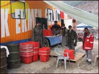 ہلال احمر کے لوگوں نے بتایا کہ وہ بالا کوٹ میں روزانہ دس سے گیارہ ہزار روٹیاں پکاتے ہیں۔ انہوں نے گرد ونواح کے گاؤں کی فہرست بنا رکھی ہے جہاں باقاعدگی سے روٹی پہنچائی جاتی ہے اس کے علاوہ تمام بڑی خیمہ بستیوں کے لیے ان کے منتظیمین تک روٹی کی ٹوکریاں پہنچا دی جاتی ہیں۔ مظفرآباد کے روٹی پلانٹ میں چھ سے آٹھ ہزار روٹیاں پکائی جاتی ہیں۔ اس پلانٹ کے لیے میدہ اور دیگر اجزاء ترکی سے آتے ہیں۔ ہلال احمر کے ڈائریکٹر سیزکی چک مک ایک ترجمان کی مدد سے بی بی سی سے گفتگو کر رہے تھے۔ انہوں نے کہا کہ انہوں نے مقامی لوگوں کو پلانٹ چلانے کی تربیت دیدی ہے اور ایک فیصلے کے تحت وہ پاکستان سے واپس جانے سے پہلے یہ پلانٹ پاکستانی ہلال احمر کے حوالے کردیں گے لیکن انہوں نے کہا کہ وہ اس بات کی ضمانت نہیں دے پائیں گے کہ ان کے جانے کےبعد بھی یہ پلانٹ چلتے رہیں اور عیک مک جن لوگوں کی زندگی کا حصہ بن چکی ہے ان تک پہنچتی رہے گی۔ | اسی بارے میں | ||||||||||||||||||||||||||||||||||||||||