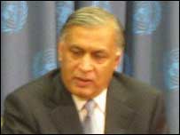 ایشین امیریکن نیٹ ورک اگینسٹ ہیومن رائٹس ایبیوز یا یعنی انا کی صدر آمنہ بٹر نے نیویارک سے بی بی سی اردو ڈاٹ کام کو بتایا کہ اقوام متحدہ کے این جی اوز سے متعلق ادارے ڈیسا، تنظیم ورچیو فائونڈیشن اور انا کے اشتراک سے ’دنیا کی بہادر ترین‘ عورت کے عنوان سے طے شدہ اس پروگرام کی گزشتہ ایک مہینے سے تیاریای ہورہی تھی۔ اس پروگرام کی میزبانی سی این این کے مشہور صحافی سولیڈاڈ او برائيں کو کرنا تھی- جمعے کے روز پروگـرام کے عین وقت انہیں کوفی عنان کے دفتر کے ذمہ دار عملداروں کی طرف سے بتایا گیا کہ وہ یہ پروگرام پاکستان کے وزیر اعظم شوکت عزیز کی اقوام متحد میں اسی دن اور اسی وقت مصروفیات کی وجہ سے ’ملتوی‘ کررہے ہیں- ڈاکٹر آمنہ بٹر نے کہا کہ انہیں اقوام متحدہ کی عملدار مریم عظام اور ڈاکٹر جوزف سلیم نے بتایا کہ اقوام متحدہ میں پاکستانی مشن کے ’اصرار‘ پر مختار مائی کا پروگرام ملتوی کردیا گیا ہے- ’جب کہ ملک کا سربراہ اقوام متحدہ میں آتا ہے تو اس کی ایسی بات کو ٹالا نہیں جا سکتا۔‘ ڈاکٹر آمنہ بٹر نے کہا کہ گزشتہ چوبیس گھنٹوں سے پاکستانی سفارتی مشن کے عملدار اقوام متحدہ میں کوفی عنان کے دفتر سے یہ ’اصرار‘ کرتے آرہے تھے کہ اقوام متحدہ میں وزیر اعظم شوکت عزیز کی پریس کانفرنس اور موجودگی میں مختار مائی کا پروگرام بیک وقت ہونےپر ہماری نوکریاں چلی جائيں گی۔‘