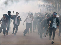مظاہرے میں پارٹی کے پنجاب کے صدر قاسم ضیا، لاہور کے صدر عزیزالرحمن چن، چند مقامی ارکان صوبائی اسمبلی محمد سمیع، عظمی بخاری اور فائزہ ملک، اور پارٹی میں ایک بار پھر شامل ہونے والے سابق گورنر پنجاب غلام مصطفے کھر بھی شریک تھے۔ جب پارٹی کے مقامی رہنما اقبال سیالوی سے مظاہرہ میں بہت کم شرکت کے بارے میں پوچھا گیا تو انہوں نے کہا کہ کم سے کم وہ خود تو شریک ہیں۔ پیپلزپارٹی کے مظاہرے میں مسلم لیگ (ن) یا اے آر ڈی کی جماعتوں سے بھی کوئی شریک نہیں تھا۔ پیپلزپارٹی کے کمزور مظاہرے سے یہ قیاس آرائیاں کمزور ہوں گی کہ سیاسی جماعتیں کارٹونوں پر احتجاج کی لہر کو (جس کا بڑا مظاہرہ چودہ فروری کو لاہور میں ہوا تھا) کسی سیاسی تحریک کی شکل میں تبدیل کرسکیں گی۔ | اسی بارے میں ایم ایم اے کی خواتین کا مظاہرہ22 February, 2006 | پاکستان ’موت کا فتوٰی دینا صحیح نہیں‘21 February, 2006 | پاکستان کارٹون: کراچی میں کفن پوش ریلی19 February, 2006 | پاکستان ’توڑ پھوڑ سے نقصان اپنا ہی ہوا‘20 February, 2006 | پاکستان | ||||||||||||||||||||||||||||||||||||||||