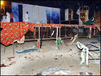 بعض اطلاعات کے مطابق ایم اے جناح روڈ پر کچھ گاڑیوں کو نذرِ آتش کر دیا گیا ہے۔ ہمارے نامہ نگار کے مطابق نشتر پارک کا اجتماع بہت بڑا تھا کیونکہ شہر میں شروع ہونے والے عیدِ میلاد کے بہت سے جلوس وہاں پر اختتام پذیر ہوتے ہیں۔ دھماکہ سٹیج کے بہت قریب نمازِ مغرب کے وقت ہوا جب لوگ صفیں باندھ چکے تھے۔ کراچی میں بی بی سی کے نامہ نگار نے بتایا ہے کہ لوگ دھماکے کی وجہ سے بہت مشتعل ہیں اور انہوں نے ہسپتال کو اپنے قبضے میں لے لیا ہے۔ یاد رہے کہ کراچی میں نو اپریل کو عید میلادالنبی کے موقع پر میلاد کی محفل میں بھگدڑ مچ جانے سے انتیس عورتیں اور بچے ہلاک اور پچاس زخمی ہوگئے ہیں۔ (تفصیلات کچھ دیر میں) | اسی بارے میں کراچی: بھگدڑ کی تحقیقات کا حکم10 April, 2006 | پاکستان | ||||||||||||||||||||||||||||||||||||||||