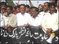 مظاہرے سے ایم ایم اے کے صوبائی رہنماؤں علامہ حسن ترابی، معراج الھدیٰ، نصراللہ شجیح اور دیگر نے خطاب کیا۔ رہنماؤں کا کہنا تھا کہ نشتر پارک دھماکہ ایک سازش تحت کیا گیا، اس سے قبل علامہ حسن ترابی پر حملہ کیا گیا اگر وہ شہید ہوجاتے تو یہاں فرقہ وارانہ فساد کروائے جاتے مگر اس میں وہ ناکام ہوئے۔ انہوں نے الزام عائد کیا کہ ان واقعات میں وہ ہی لوگ ملوث ہیں جو کراچی پر قابض ہیں اور بھتہ لیتے ہیں، ان کا مطالبہ تھا کہ گورنر اور وزیر داخلہ کو برطرف کیا جائے۔ وفاقی دارالحکومت اسلام آباد اور ملحقہ شہر راولپنڈی میں کراچی کے بم دھماکے کے خلاف سنی تحریک اور دینی جماعتوں کی اپیل پر جزوی ہڑتال ہوئی اور چند مقامات پر جمعے کی نماز کے بعد مظاہرے کیئے گئے تاہم سڑکوں پر ٹریفک معمول کے مطابق رہی۔ اسلام آباد اور راولپنڈی کے زیادہ تر بڑے بازار جمعہ کو بند ہوتے ہیں جو آج بھی بند رہے اور دینی جماعتوں کے مقامی رہنماؤں کے مطابق یہ بازار ہڑتال کی وجہ سے بند رہے تاہم چھوٹے بازاروں میں دکانیں کھلی رہیں۔ اسلام آباد میں کراچی کمپنی اور آبپارہ مارکیٹ میں لوگوں نے کراچی بم دھماکے کے خلاف مظاہرے کیئے جبکہ راولپنڈی میں بھی ایک مظاہرہ ہوا۔ ان مظاہروں میں دینی جماعتوں کے رہنماؤں نے کراچی بم دھماکے کی مذمت کرتے ہوئے اسے حکومت کی نا اہلی قرار دیا۔ انہوں نے کہا کہ حکومت لوگوں کو تحفظ دینے میں ناکام ہو گئی ہے۔ ان افراد نے حکومت سے مطالبہ کیا کہ کراچی کے واقعے میں ملوث ملزمان کو جلد گرفتار کیا جائے۔