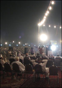 قاضی حسین احمد نے کہا کہ صدر مشرف بندوق کے ذریعے زبردستی اقتدار میں آئے ہیں اور وہ ’کبھی بھی‘ انتخابات کراکے نہیں جائیں گے۔ مجلس کے رہنما نے کہا کہ صدر مشرف کو ہٹانے کے لیے قوم کو اتحاد کا مظاہرہ کرتے ہوئے احتجاج کرنا ہوگا۔ قاضی حسین احمد نے کہا کہ وہ مجلس عمل میں شامل دوسری جماعتوں سے مشورے کے بعد جلد ہی اسلام آباد میں احتجاج اور دھرنے کی تاریخ کا اعلان کریں گے۔ انہوں نے کہا کہ وہ ایک بار اسلام آباد پہنچ گئے تو پھر جنرل مشرف کے استعفی دیکر جانے تک نہیں ہٹیں گے۔ انہوں نے کہا کہ عوام اس موقع پر آنسو گیس اور لاٹھی چارج برداشت کرنے کے لیے تیار رہیں اور اگر گولی بھی چلے تو بھی وہاں سے نہ ہٹیں۔