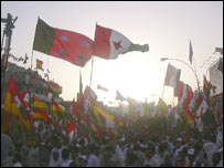 انہوں نے کہا کہ جس پاکستان میں پنجاب کے رہنے والوں کو روٹی ملے اور بلوچوں کے بچے بھوکے ہوں اور جس ملک میں جرنیلوں کے بنگلے ہوں اور بلوچوں کے بچوں کو جھونپڑی بھی دستیاب نہ ہوں تو ایسے پاکستان کا وہ کیا کریں۔ سردار عطاءاللہ منیگل نے کہا کہ یہ شاید آخری مرتبہ وہ پونم کے قائد کی حیثیت سے اس جلسے میں آئے ہیں اب وہ پونم کی قیادت سے دستبردار ہوتے ہیں۔ پشتونخواہ ملی عوامی پارٹی کے چیئرمین اور پونم کے لیڈر محمود خان اچکزئی نے کہا کہ میثاق جمہوریت میں شامل اس ایک نکتے پر حمایت کرنے کو تیار ہیں جس میں کہا گیا ہے کہ حکومت میں فوج یا خفیہ ایجنسیوں کا کوئی کردار نہیں ہوگا۔ اس سلسلے میں اتحاد برائے بحالی جمہوریت، متحدہ مجلس عمل اور پونم کی متحدہ تحریک کا آغاز کوئٹہ سے کیا جائے۔ انہوں نے ہر قوم سے تعلق رکھنے والے علماء سے اس پر فتویٰ طلب کیا ہے کہ ان کے وسائل پر ان کے بچوں کا حق ہے یا پنجاب ہی سب پر قبضہ جمائے رکھے۔نیشنل پارٹی کے لیڈر ڈاکٹر عبدالحئی نے اپنے جذباتی انداز میں وفاقی حکومت کی پالیسیوں پر تنقید کی۔ اس جلسے سے سندھ اور سرائیکی قوم پرست جماعتوں کے قائدین نے بھی خطاب کیا اور بلوچستان کے علاوہ وزیرستان میں فوجی کارروائیاں بند کرنے کا مطالبہ کیا۔ | اسی بارے میں ’اےآرڈی کو پونم کا ساتھ چاہیئے‘21 September, 2004 | پاکستان چھوٹے صوبوں کے حقوق کا پھر مطالبہ16 August, 2004 | پاکستان پونم سیمینار: حکومت کی مذمت19 April, 2004 | پاکستان نئی آئین ساز اسمبلی کا مطالبہ23 February, 2004 | پاکستان بلوچستان میں فوجی آپریشن کا الزام07 July, 2004 | پاکستان کوئٹہ: نئے آئین کے حق میں بڑا جسلہ18 May, 2004 | پاکستان | ||||||||||||||||||||||||||||||||||||||||