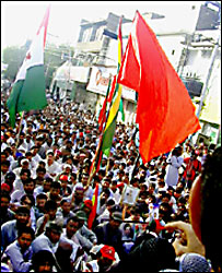 پاکستان پیپلز پارٹی کے صدر حاجی لشکری رئیسانی نے کہا کہ متحدہ مجلس عمل کو حزب اقتدار اور حزب اختلاف میں سے ایک کے ساتھ ہونا ہوگا۔ کوئٹہ میں ریلی منان چوک سے شروع ہوئی جو کندھاری بازار میزان چوک لیاقت بازار پرنس روڈ سے ہوتی ہوئی واپس منان چوک پہنچی۔ جلوس میں شامل مظاہرین نے نواب اکبر بگٹی کی تصویریں اور مختلف جماعتوں کے جھنڈے اٹھائے ہوئے تھے۔ بلوچستان کے دیگر علاقوں میں بھی احتجاجی ریلییاں منعقد ہوئی ہیں۔ پنجگور میں شدید کشیدگی تھی پنجگور کے تحصیل ناظم رحمدل بلوچ نے بتایا ہے کہ مظاہرین نے گرفتاریوں کے خلاف تھانے کو گھیرے میں لیا تھا لیکن کسی ناخوشگوار واقعے کی اطلاع نہیں ملی۔ اس کے علاوہ بعض مقامات پر فائرنگ ہوئی ہے اور کچھ دکانوں کو نقصان پہنچایا گیا ہے۔ نوشکی، دالبندین، ڈیرہ مراد جمالی، گوادر، تربت، قلات، سبی اور دیگر علاقوں میں پرامن ریلیاں نکالی گئیں۔ پسنی سے مقامی صحافی امام بخش نے بتایا ہے کہ پولیس نے یہاں صحافیوں کے خلاف بھی کارروائی شروع کر رکھی ہے اور بعض مقامات پر چھاپے مارے گئے ہیں مکران ڈویژن کے کئی شہروں میں منعقد ریلیوں میں پولیس کارروائی کی مذمت کی گئی ہے۔ |