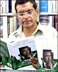 پاکستان کے صدر جنرل پرویز مشرف کی کتاب کی باقاعدہ تقریبِ رونمائی تو واشنگٹن میں ہو رہی ہے لیکن اسلام آباد کے بازاروں میں یہ کتاب قارئین کے لیئے دستیاب ہے۔ ’ان دی لائن آف فائر، اے میموائر‘ کے نام سے شائع ہونے والی اس کتاب میں صدر مشرف نے متعدد اہم انکشافات کیئے ہیں اور کارگل کی جنگ، 1999 کی فوجی بغاوت، خود کش حملے، دہشت گردی کے خلاف عالمی جنگ، القاعدہ اور ایٹمی ٹیکنالوجی کے پھیلاؤ جیسے موضوعات کا احاطہ کیا ہے۔ اس کتاب کو چھ حصوں میں تقسیم کیا گیا ہے اور اس میں بتیس ابواب ہیں۔ کتاب کا انتساب پاکستان کےعوام کے نام بھی ہے جبکہ ابتدائیے میں صدر مشرف نے اس کتاب کو پاکستان کے بارے میں جاننے کی کوشش کرنے والوں کے لیئے ایک کھڑکی قرار دیا ہے۔ کتاب کے پرولاگ میں صدر مشرف نے دسمبر 2003 میں خود پر ہونے والے حملوں کی تفصیل بیان کی ہے اور ان کا کہنا ہے کہ یہ پہلا موقع نہیں کہ وہ موت کا شکار ہونے سے بال بال بچے ہوں بلکہ ان کی زندگی میں متعدد ایسے مواقع آئے جب موت انہیں چھو کر گزر گئی۔