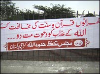 مجلس تحفظ حدود اللہ کے رہنما قاری حنیف جالندھری کا کہنا تھا کہ مذہبی جماعتوں پر الزام عائد کیا جارہا ہے کہ وہ سیاسی بنیادوں پر اس قانون کی مخالفت کر رہی ہیں اگر ایسا ہوتا تو بینظیر بھٹو اور امین فہیم حکمرانوں کی جھولی میں جاکر نہ بیٹھتے۔ انہوں نے کہا یہ خالص مذہبی معاملہ ہے جس کا ثبوت یہ ہے کہ بل کی منظوری والے دن حکمران جماعت کے چھالیس ممبران غیر حاضر رہے تھے۔ کراچی میں متحدہ قومی موومنٹ کی قیادت سے ملاقات کے بارے میں انہوں نے کہا کہ علما کے ایم کیو ایم سے مذاکرات مثبت رہے ہیں۔ جلسے میں علما نے اعلان کیا کہ چودہ دسمبر کو لاہور میں آل پارٹیز کافنرنس منعقد کی جائیگی جس میں مستقبل کا لائحہ عمل طے کیا جائیگا۔ | اسی بارے میں بل کے مخالفین منافق ہیں: مشرف05 December, 2006 | پاکستان تحفظِ حقوقِ نسواں بل قانون بن گیا 01 December, 2006 | پاکستان اختلافات قائم، اتحاد خطرے میں07 December, 2006 | پاکستان حقوق نسواں کا ایک اور بل 03 December, 2006 | پاکستان | ||||||||||||||||||||||||||||||||||||||||