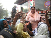 انہوں نے کہا ’چند خواتین تھیں ان کے پاس ہتھیار نہیں تھے وہ احتجاج کر رہی تھیں جو ان کا بنیادی حق ہے۔ ارباب رحیم چند نہتی عورتوں سے خوفزدہ ہوگئے ہیں‘۔ صدر ٹاؤن کے پولیس افسر نے بتایا کہ خواتین کو حراست میں نہیں لیا گیا تھا۔ ان کے مطابق وہ ٹریفک میں رخنہ پیدا کر رہی تھیں اس لیے انہیں ریگل چوک سے ہٹا کر دوسری جگہ پر چھوڑ دیا گیا۔ ان کا کہنا تھا کہ کسی کو بھی معمولاتِ زندگی متاثر کرنے کی اجازت نہیں دی جاسکتی ۔ | اسی بارے میں وزیراعلٰی کے خلاف تحریک استحقاق23 June, 2006 | پاکستان پی پی پی (ن) لیگ کواعتراض بتائے گی21 January, 2007 | پاکستان ٹیکسیوں کی درآمد، حکومت کا اعتراف19 January, 2007 | پاکستان وزیراعظم کے لیے امیدوار ہوں: بینظیر06 January, 2007 | پاکستان پیپلز پارٹی: انقلاب سے احتساب تک26 November, 2006 | پاکستان | ||||||||||||||||||||||||||||||||||||||||