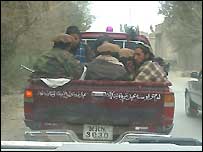 مسلح طالبان تھوڑی دیر بعد واپس لوٹے، گاڑی سے اترے اور سلام دعا کرنے لگے۔ ان میں سے ایک کڑیل نوجوان نے جو بظاہر اس گاڑی میں سوار طالبان کا سربراہ دکھائی دیتا تھا، مجھے مخاطب کرتے ہوئے کہا: ’امیر صاحب (بیت اللہ) نے بھی اپنا سلام بھیجا ہے۔ آپ ہمارے پیچھے آئیں‘۔ میں نے بغیر کسی سوال کے ان کے حکم کی تکمیل شروع کر دی۔ وہ میر علی کے جنوب میں خیسور کے علاقے کو جانے والی سڑک پر روانہ ہوگئے۔ یہ پتلی سڑک ابتداء میں پختہ لیکن بعد میں کچے ٹریک میں تبدیل ہوگئی۔ علاقے میں آزادی سے گھومنے والی مقامی طالبان کی گاڑیوں کی چند نشانیاں ہیں۔ ان کی چھت پر سرخ یا نیلی ایمرجنسی لائٹ، سیاہ شیشے اور پشت پر پشتو میں جہاد کے حق میں پرجوش شعر درج ہوتے ہیں۔ ہمارے آگے چلنے والی گاڑی کا بھی کچھ یہی حال تھا۔ پشت پر لکھے شعر کا مطلب کچھ یوں تھا: ’میں کسی اور کے آگے سر جھکا نہیں سکتا کیونکہ دن میں پانچ مرتبہ ایسا کرتا ہوں‘۔ ہمارے ایک ساتھی نے گاڑی میں موسیقی لگانے کا تقاضہ کیا تو ڈرائیور نے یہ کہہ کر اسے ٹوک دیا کہ یہاں ’دفعہ 144‘ نافذ ہے، اس سے مراد یہ کہ طالبان نے علاقے میں موسیقی پر پابندی لگا رکھی ہے۔ اس سفر کو دلچسپ بنانے کے لیے میں نے طالبان کے ساتھ ان کی گاڑی میں سفر کرنے کا فیصلہ کیا۔ طالبان بخوشی اس پر راضی ہوگئے۔ پچھلی نشست پر پڑی ایک کلاشنکوف ہٹاتے ہوئے ایک طالب نے فخریہ انداز میں بتایا کہ یہ انہوں نے افغانستان میں امریکیوں سے چھینی تھی۔ ’یہ امریکہ میں بنی کلاشنکوف ہے‘۔