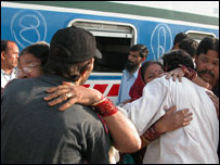 بھارت کے شہر پانی پت کے قریب مبینہ تخریب کاری کا نشانہ بننے والی ٹرین سمجھوتہ ایکسپریس کے دو سو ستر کے قریب مسافر سندھ ایکسپریس کے ذریعے منگل کی شام کراچی پہنچ گئے ہیں۔ کینٹ سٹیشن پر سمجھوتہ ایکسپریس کے کراچی سے تعلق رکھنے والے مسافروں کے استقبال کے لیے خصوصی انتظامات کیے گئے تھے اور بڑی تعداد میں مسافروں کے رشتےدار ٹرین کی آمد سے پہلے ہی پلیٹ فارم پر پہنچ چکے تھے۔ جیسے ہی سندھ ایکسپریس پلیٹ فارم پر پہنچی تو لوگوں نے بھاگ کر بوگیوں میں اپنے پیاروں کو تلاش کرنا شروع کر دیا۔اس دوران پلیٹ فارم پر خوشی اور غم کا ملا جلا ماحول تھا، کچھ لوگ آنسو بہا رہے تھے کہ کچھ اپنے پیاروں کو صحیح سلامت دیکھ کر خوش ہو رہے تھے۔ ان مسافروں میں کراچی کی مسز شاہ محمد بھی شامل تھیں، جنہوں نے اپنے بچے کو زندہ بچایا تھا۔