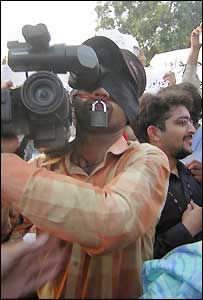 شمیم رحمان کا کہنا تھا کہ اگر آزادی صحافت کی طرف کوئی بھی قدم اٹھے گا تو اس کی مزاحمت کی جائے گی۔ حیدرآباد سے بی بی سی کے نامہ نگار علی حسن کے مطابق حیدرآباد اور سکھر میں بھی صحافیوں نے احتجاجی جلوس نکالے۔ حیدرآباد میں صحافیوں نے منہ پر سیاہ پٹیاں باندھی ہوئی تھیں اور وہ زبان بندی نامنظور کے نعرے لگا رہے تھا۔ کوئٹہ میں اسمبلی کا بائیکاٹ بلوچستان اسمبلی میں صحافی ان واقعات کے خلاف واک آؤٹ کرتے ہوئے باہر نکل آئے اور اسمبلی کے گیٹ پر نعرہ بازی کی۔ قائد حزب اختلاف کچکول علی ایڈووکیٹ اور اپوزیشن کے دیگر ارکان گیٹ پر صحافیوں سے یکجہتی کے لیے پہنچ گئے اور صحافیوں کو ایوان میں لے کر آئے لیکن اس وقت کورم پورا نہ ہونے کی وجہ سے اجلاس ملتوی کر دیا گیا۔ اس کے بعد اپوزیشن چیمبر میں حزب اختلاف کے قائدین نے اخباری کانفرنس میں صحافیوں پر تشدد کی مذمت کی ہے۔ ادھر مجلس عمل مسلم لیگ نواز اور تحریک انصاف کے مشترکہ جلسۂ عام میں صحافیوں پر تشدد اور جیو کے دفتر میں پولیس کی توڑ پھوڑ کے خلاف قرار منظور کی گئی ہے۔ ادھر جعفر آباد اور ڈیرہ مراد جمالی سے ملنے والی اطلاعات کے مطابق صحافیوں نے پولیس تشدد کے خلاف مظاہرے کیے ہیں اور حکومتی کارروائی کی سخت الفاظ میں مذمت کی ہے۔ |