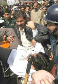 مظاہرین نے پلے کارڈز اور بینرز اٹھا رکھے تھے جن پر آزادئ صحافت پر ’قدغن نامنظور‘ اور پنجاب پولیس کے خلاف نعرے درج تھے۔ مظاہرین نے پولیس کی سخت سکیورٹی میں پشاور پریس کلب سے گورنر ہاؤس تک مارچ کیا۔ بلند آواز میں نعرے لگاتے ہوئے صحافی جب شیر شاہ سوری روڈ کے قریب پہنچے تو پولیس نے گورنر ہاؤس کی طرف جانے والے سڑک کو بلاک کر کے مظاہرین کو روکنے کی کوشش کی تاہم صحافی سخت انتظامات کے باوجود گورنر ہاؤس پہنچنے میں کامیاب ہوگئے۔ اس موقع پر صحافیوں نے حکومت اور صدر جنرل پرویز مشرف کے خلاف نعرہ بازی بھی کی اور مطالبہ کیا کہ صحافیوں کو تحفظ فراہم کیا جائے۔ اس موقع پر خطاب کرتے ہوئے کے ایچ یو جے کے صدر جان افضل، ایم ریاض اور افتخار علی نے جیو نیوز کے دفتر پر حملے کی شدید الفاظ میں مذمت کی اور کہا کہ حملہ ایک سوچے سمجھے منصوبے کے تحت ہوا ہے۔ انہوں نے کہا کہ اس واقعے سے دنیا بھر میں پاکستان کا وقار مجروح ہوا ہے۔ انہوں نے مطالبہ کیا کہ واقعہ کے اصل ملزمان کو گرفتار کر کے انہیں قرار واقعی سزا دی جائے ورنہ اخبارنویسوں کا احتجاج جاری رہے گا۔ بلوچستان میں عدالتوں کا بائیکاٹ کوئٹہ سے ہمارے نامہ نگار عزیزاللہ خان کے مطابق بلوچستان ہائی کورٹ بار ایسوسی ایشن کے صدر ہادی شکیل ایڈووکیٹ نے ضلع کچہری سے ریلی کی قیادت کی اور کوئٹہ پریس کلب کے سامنے احتجاجی مظاہرہ کیا ہے۔ اس موقع پر وکلاء نے سخت نعرہ بازی کی ہے ۔ ہادی شکیل ایڈووکیٹ نے بی بی سی کو بتایا کہ سنیچر کی صبح صوبہ بھر میں وکلاء عدالتوں میں پیش نہیں ہوئے اور علامتی بھوک ہڑتال بھی کی گئی ہے جبکہ وکلاء نے میزان چوک پر کچھ دیر کے لیے دھرنا بھی دیا ہے۔ بلوچستان بار ایسوسی ایشن نے لاہور میں وکلاء پر پولیس تشدد کی سخت الفاظ میں مذمت کی ہے۔ بلوچ بار ایسوسی ایشن کے زیراہتمام بھی وکلاء نے آج مظاہرہ کیا ہے۔ بلوچ بار ایسوسی ایشن کے صدر صادق رئیسانی نے کہا کہ موجودہ حکمرانوں کے خلاف ان کی تحریک جاری رہے گی۔ جمعہ کے روز اسلام آباد میں وکلاء اور صحافیوں پر پولیس تشدد کے خلاف کوئٹہ اور صوبے کے دیگر اضلاع میں بھی صحافیوں نے بھی احتجاج کیا ہے۔ |