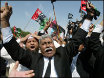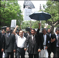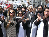 اسلام آباد میں سپریم جوڈیشل کونسل میں چیف جسٹس افتخار محمد چودھری کے خلاف صدارتی ریفرنس کی سماعت کے موقع پر منگل کو اسلام آباد، کراچی، لاہور اور پشاور سمیت کئی شہروں میں مظاہرے کیے گئے ہیں۔ بی بی سی کے نامہ نگار ذوالفقار علی نے بتایا کہ صدارتی ریفرنس اور چیف جسٹس افتخار محمد چودھری کی درخواست کی سماعت کے موقع پر سپریم کورٹ کی عمارت کے باہر وکلاء اور حزبِ مخالف کی جماعتوں نے احتجاج کیا۔ حزبِ اختلاف کے کارکن اور وکلاء صبح آٹھ بجے سے ہی ٹولیوں کی شکل میں سپریم کورٹ کی عمارت کے سامنے جمع ہونا شروع ہوئے اور دوپہر تک آتے رہے۔ اس موقع پر پولیس اور رینجرز کی بھاری نفری تعینات کی گئی تھی اور سپریم کورٹ جانے والے تمام راستے عام ٹریفک کے لیے بند کردیے گئے تھے۔ احتجاج میں وکلاء کے علاوہ متحدہ مجلس عمل کے حافظ حسین احمد، تحریک انصاف کے عمران خان اور متحدہ قومی موؤمنٹ کے کارکنان بھی شریک ہوئے۔ اے آر ڈی کی قیادت مخدوم امین فہیم اور راجہ ظفر الحق کر رہے تھے۔ اس موقع پر مخدوم امین فہیم نے کہا کہ احتجاج کے نتیجے میں پاکستان میں جمہوریت آئے گی اور آمریت کا ہمیشہ کے لیے خاتمہ ہوگا۔
