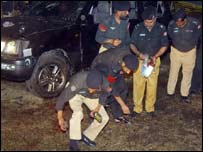 اس سے قبل پاکستان کے وزیرِاطلاعات و نشریات محمد علی درانی نے کہا تھا کہ وزیرِ داخلہ اس خود کش حملے کا نشانہ ہو سکتے تھے۔ تاہم ان کا کہنا ہے کہ یہ کہنا قبل از وقت ہوگا کہ اس کے پیچھے کون لوگ ہیں۔ نیشنل کرائسز مینجمنٹ سیل کے سربراہ بریگیڈیئر جاوید اقبال چیمہ کا کہنا ہے کہ خصوصی تحقیقاتی ٹیم چارسدہ پہنچ چکی ہے۔ دریں اثناء وفاقی سیکرٹری داخلہ سید کمال شاہ نے کہا کہ خفیہ اداروں نے چند ہفتے قبل اپنی رپورٹوں میں اس نوعیت کے خودکش بم حملوں کے خدشے کا اظہار کیا تھا۔بی بی سی اردو ڈاٹ کام سے بات کرتے ہوئے ان کا کہنا تھا کہ ’اس طرح کی رپورٹس ابھی حال ہی میں نہیں آئی تھیں۔ تاہم وہ خاص طور پر اس جلسے کے متعلق نہیں تھیں لیکن چند ہفتے پہلے آئی تھیں‘۔ اس سوال پر کہ کیا اس واقعے کے پیچھے ان لوگوں کا ہاتھ ہوسکتا ہے جنہوں نے پچھلے دنوں حکومت کو خود کش حملوں کی دھمکیاں دی تھیں، سیکرٹری داخلہ نے کہا کہ ’جب تک ابتدائی تفتیش نہیں ہو جاتی یہ کہنا قبل از وقت ہوگا اور کسی پر فوری طور پر اس واقعے کا الزام لگانا مناسب بات نہیں ہے‘۔ حملہ آور کا سر مل گیا ہے