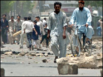 سہراب گوٹھ کے پشتون آبادی والے علاقے سے پینٹ شرٹ پہن کر گزرنے والے ہر شخص کو تشدد کا نشانہ بنایا جاتا رہا جبکہ بعض مسلح افراد نے رکاوٹیں کھڑی کر کے سپر ہائی وے کو بلاک کیے رکھا۔ اس تمام ہنگامہ آرائی کے باوجود شہر کی سڑکوں پر پولیس کی موجودگی بہت کم تھی۔ شہر میں سنیچر سے پھوٹنے والے پُرتشدد ہنگاموں میں اب تک چالیس افراد ہلاک ہوئے ہیں جبکہ زخمیوں کی تعداد ڈیڑھ سو کے قریب بتائی جا رہی ہے۔ شہر کے دوسرے داخلی راستے قائد آباد پر بھی ہنگامہ آرائی ہوئی، جہاں نامعلوم افراد نے دو موٹر سائیکل جلائیں جبکہ علاقے سے فائرنگ کی آوازیں بھی آتی رہیں۔ اختیارات کے ناجائز استعمال کے الزام کے تحت صدارتی ریفرنس کا سامنا کرنے والے چیف جسٹس آف پاکستان جسٹس افتخار محمد چودھری سندھ ہائی کورٹ بار ایسوسی ایشن کی گولڈن جوبلی تقریبات میں شریک ہونے کے لیے بارہ مئی کو کراچی آئے تھے، لیکن انہیں کئی گھنٹے ایئر پورٹ پر مبینہ طور محصور رہنے کے بعد اسلام آباد واپس لوٹنا پڑا تھا۔ ان کی آمد کے موقع پر وکلاء تنظیموں اور حزب مخالف کے جماعتوں نے ان کی حمایت جبکہ صدر مشرف کی حلیف جماعت ایم کیو ایم نے ’عدلیہ کو سیاسی مقاصد کے لیے استعمال کرنے‘ کے خلاف ریلیاں نکالیں۔ اس کشیدہ ماحول میں متحارب سیاسی گروہوں کے درمیان ہونے والے تصادم کے نتیجے میں کئی افراد ہلاک اور بیسیوں زخمی ہوئے تھے۔ اتوار کو جماعت اسلامی نے ہلاک ہونے والے اپنے دو کارکنوں کی نماز جنازہ مزار قائد کے نزدیک ادا کی۔ اس موقع پر جماعت اسلامی کے منور حسن سمیت کئی رہنماؤں نے اپنے خطاب میں الیکشن کمیشن آف پاکستان سے ایم کیو ایم پر پابندی لگانے کا مطالبہ کیا۔