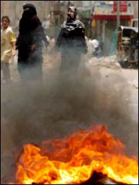 کراچی میں ہنگاموں کےخلاف اے آر ڈی اور ایم ایم اے میں شامل جماعتوں کی کال پر اندرون سندھ کے سارے ضلع ہیڈ کوارٹرز میں احتجاجی مظاہرے اور ریلیاں ہوئی ہیں۔ حیدرآباد، نواب شاہ، لاڑکانہ، قمبر شہداد کوٹ، سکھر اور جیکب آباد سمیت سارے شہروں اور تحصیل ہیڈ کوارٹروں میں احتجاجی جلوس نکالے گئے۔ پولیس حکام کے مطابق شکارپور کے جہاز چوک پر واقع ایم کیو ایم کے زونل دفتر کو نامعلوم افراد نے آگ لگا دی۔ایم کیو ایم کے مقامی رہنماؤں نے کسی کے خلاف ایف آئی آر درج نہیں کروائی۔ جیکب آباد میں پی پی پی، جی یو آئی اور ایس ٹی پی کے جلوس کے دوران مشتعل لوگوں نے شہر میں لگے ہوئے ایم کیو ایم کے جھنڈوں کو آگ لگا دی۔ ایم کیو ایم کے سربراہ الطاف حسین کے پتلے بھی نذر آتش کیئے گئے۔ سکھر اور نواب شاہ میں کراچی کے ہنگاموں کے دوران ہلاک شدگان کے لیے غائبانہ نماز جنازہ ادا کی گئی۔ سندھ کے قوم پرست رہنما رسول بخش پلیجو کی جماعت عوامی تحریک کی جانب سے ان کے ایک کارکن محمد نواز کنرانی کی کراچی میں ہلاکت کے خلاف حیدرآباد، بدین، ٹھل اور دیگر چھوٹے بڑے شہروں میں شٹر بند ہڑتال کی گئی۔ تحریک نفاذ فقہ جعفریہ پاکستان نے پیر کو پورے ملک میں کراچی کے واقعات کے بعد یوم دعا منانے کا اعلان کیا ہے۔ | اسی بارے میں کراچی کی ’جنگ‘ کس نے جیتی؟12 May, 2007 | پاکستان کراچی میں ہنگامے، چونتیس ہلاک12 May, 2007 | پاکستان چیف جسٹس کے وکلاء ’صوبہ بدر‘12 May, 2007 | پاکستان صدر کے جلسے کی تیاریاں مکمل12 May, 2007 | پاکستان پشاور: پیر سے پیہہ جام ہڑتال12 May, 2007 | پاکستان دھماکہ:سابق فراری کمانڈر زخمی12 May, 2007 | پاکستان کراچی: مزید ہلاکتیں، رینجرز تعینات13 May, 2007 | پاکستان کراچی کے خون سے اخبارات رنگے رہے13 May, 2007 | پاکستان | ||||||||||||||||||||||||||||||||||||||||