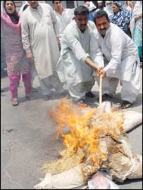 کراچی میں ہفتے کو رونماء ہونے والے تشدد کے واقعات کے خلاف ملک کے مختلف شہروں میں سیاسی جماعتوں کی طرف سے یوم سیاہ منایا گیا اور حکومت اور متحدہ قومی موومنٹ کے خلاف ریلیاں نکالی گئیں۔ ان احتجاجی ریلیوں میں کئی جگہوں پر ایم کیو ایم کے خود ساختہ جلا وطن سربراہ الطاف حسین کے پتلے بھی جلائے گئے۔ لاہور لاہور کے ناصر باغ میں کراچی میں ہلاک ہونےوالے ایک نوجوان شجاع الرحمان کی غائبانہ نماز جنازہ ادا کی گئی۔ اسلامی جمعیت طلبہ کے ناظم اعلی نصراللہ گورایہ نے اس موقع پر خطاب کرتے ہوئے کہا کہ یہ جمیعت کا اکیس واں رکن ہے جو کراچی میں ایم کیو ایم کے ہاتھوں ہلاک ہوا ہے۔