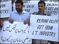 اسلام آباد میں انفارمیشن ٹیکنالوجی کی صنعت سے وابستہ افراد نے آئی ٹی انڈسٹری پر لگنے والے جنرل سیلز ٹیکس ’جی ایس ٹی‘ کے خلاف منگل کو سینٹرل بورڈ آف ریونیو ’سی بی آر‘ کے دفتر کے سامنے مظاہرہ کیا ہے۔ اس مظاہرے کا اہتمام انٹر نیٹ سروس پرووائیڈرز ایسوسی ایشن آف پاکستان، کمپیوٹر سوسائٹی آف پاکستان اور پاکستان کمپیوٹر ایسوسی ایشن نے مل کر کیا تھا۔ انٹرنیٹ سروس پروائیڈرز ایسوسی ایشن کے وہاج سراج کا کہنا تھا کہ یہ مظاہرہ پوری آئی ٹی انڈسٹری کی طرف سے کیا جا رہا ہے۔ اُن کا کہنا تھا کہ گزشتہ سال حکومت کی جانب سے کمپیوٹر اور نیٹ ورکنگ سامان پر جی ایس ٹی لگایا گیا تھا جس کی وجہ پاکستان میں کمپیوٹر، انٹر نیٹ، سافٹ وئیر ہاوسسز، کال سینٹرز اور آئی ٹی کی صنعت کو شدید نقصان پہنچا ہے۔