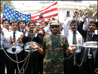 مظاہرین نے جلوس کے راستے میں وزیر اعلیْ پنجاب پرویز الہیْ کے حق میں لگے بینرز اتار کر انہیں نذر آتش کردیا۔ حزب مخالف کی جماعتوں کے ارکان اسمبلی اور رہنماؤں مخدوم شاہ محمود قریشی، رانا ثناء اللہ، جہانگیر بدر، رانا مشہود احمد خان، عظمیْ بخاری، سیمع اللہ اور رانا آفتاب نے مظاہرین کا پنجاب اسمبلی کے باہر چوک میں استقبال کیا۔ جلوس میں اعلیْ عدلیہ کے سابق ججوں، سینیئر وکلاء کے علاوہ خواتین وکلاء کی ایک بڑی تعداد نے بھی شرکت کی۔ سلمان رشدی کے خطاب کی مذمت