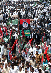 علاوہ ازیں چیف جسٹس افتخار محمد چودھری کے ساتھ اظہار یکجہتی کے لئے جمعرات کو پنجاب میں وکلاء نےعدالتوں کا بائیکاٹ کیا اوراحتجاجی جلوس نکالے۔ لاہور میں وکلاء اور سیاسی جماعتوں نے پنجاب اسمبلی تک پرامن جلوس نکالا۔ وکلاء کا جلوس ایوان عدل سے روانہ ہوا اورلاہور ہائی کورٹ کے سامنے ہائی کورٹ بارایسوسی ایشن کا جلوس بھی اس میں شامل ہوگیا۔اس موقع پر سیاسی جماعتوں اور سول سوسائٹی کی مختلف تنظیموں کے کارکنوں نے بھی اپنی جماعتوں کے جھنڈوں کے ساتھ شامل ہوگئے۔گرمی کے باوجود وکلاء کی تعداد اور جوش و خروش میں کوئی کمی دیکھنے میں نہیں آئی۔ جلوس میں پیپلز پارٹی، جماعت اسلامی، مسلم لیگ (ن)، تحریک انصاف، خاکسار تحریک اور لیبر پارٹی کے رہنماؤں اور کارکنوں کے علاوہ پاکستان میڈیکل ایسوسی ایشن، پنجاب پروفیسرز لیکچررز ایسوسی ایشن، پنجاب ٹیچرز ایسوسی ایشن، پنجاب یونیورسٹی اکیڈیمک اسٹاف، یلیو کیب فیڈریشن سمیت سول سوسائٹی کی تنظیموں نے بھی شرکت کی۔ مظاہرین مشرف حکومت کے خلاف نعرے لگا رہے تھے اور انہوں نے کتبے اور بینرز بھی اٹھا رکھے تھے جن پر جسٹس افتخار محمد چودھری کے حق میں اور جنرل مشرف کے مخالف نعرے درج تھے۔