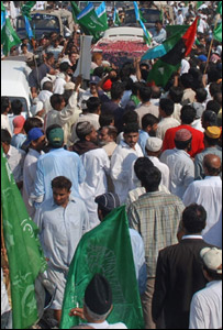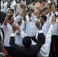 چیف جسٹس آف پاکستان جسٹس افتخار چودھری کا قافلہ پینتیس گھنٹے کے سفر کے بعد ملتان میں واقع لاہور ہائیکورٹ ملتان بنچ کے احاطے میں پہنچ گیا ہے تاہم تاحال تقریب کا آغاز نہیں ہو سکا ہے۔ اس وقت چیف جسٹس ہائیکورٹ کی عمارت میں موجود ہیں جبکہ پنڈال میں موجود ہزاروں وکلاء کئی گھنٹے سے چیف جسٹس کی سٹیج پر آمد کے منتظر ہیں۔ موقع پر موجود وکلاء انتہائی پرجوش ہیں اور نعرے بازی کا سلسلہ جاری ہے۔ اس موقع پر پنڈال میں فوجی ترانے بھی بجائے جا رہے ہیں۔ ملتان کے وکلاء نے شہر کے نواحی علاقے رنگو میں چیف جسٹس کے قافلے کا استقبال کیا تھا اور ان کے جلوس میں شامل ہوئے تھے۔ جسٹس افتخار کے قافلے کو ملتان میں داخلے کے بعد پنڈال تک پہنچنے میں ساڑھے چار گھنٹے کا وقت لگا۔ اس سے قبل ساہیوال میں شہر میں داخلے سے پنڈال تک پہنچنے میں پانچ جبکہ اوکاڑہ میں چار گھنٹے لگے تھے۔ چیف جسٹس کے قافلے کے استقبال کے لیے ملتان کے داخلی راستوں پر سیاسی جماعتوں کی جانب سے بڑے بڑے استقبالیہ کیمپ لگائے گئے ہیں اور اطلاعات کے مطابق چوک کمہاراں کے علاقے میں پاکستان پیپلز پارٹی اور مسلم لیگ نواز کے بڑے جلوس چیف جسٹس کے استقبال کے لیے موجود ہیں۔ دریں اثناء چیف جسٹس کے وکلاء نے اعلان کیا ہے کہ جسٹس افتخار چودہ جولائی کو ایک مرتبہ پھر لاہور کا دورہ کریں گے۔ ان کا یہ دورہ لاہور بار ایسوسی ایشن کی دعوت پر ہو گا تاہم اس مرتبہ وہ بذریعہ ہوائی جہاز لاہور جائیں گے۔ اس سے قبل ملتان کے راستے میں ساہیوال کے مقام پر چیف جسٹس پاکستان افتخار محمد چودھری نے وکلاء سے خطاب کرتے ہوئے کہا کہ اگر ریاست کے تینوں ادارے مقننہ، عدلیہ اور انتظامیہ اپنے اپنے محور میں کام کریں تو پاکستان کی وہ صورتحال نہ ہو جو اس وقت ہے۔ انہوں نے کہا کہ وکلاء کی تحریک ضرور کامیاب ہوگی، اس میں دیر ہے لیکن اندھیر نہیں۔ انہوں نے اپنی تقریر کے اختتام کے وقت کہا کہ اب ایک نئی صبح طلوع ہو چکی ہے۔ سفر کے دوران راستے میں آنے والے شہروں میں چیف جسٹس کا زبردست استقبال کیا گیا۔ ساہیوال میں بھی ہزاروں کی تعداد میں لوگوں نے چیف جسٹس کو خوش آمدید کہا۔ ساہیوال میں انہوں نے چار مئی کو احتجاجی مظاہرے میں پولیس کے ہاتھوں زخمی ہونے والے وکلاء سے بھی ملاقات کی اور ان کی خیریت دریافت کی۔ چیف جسٹس کے وکیل اعتزاز احسن نے کہا کہ وکلاء کی تحریک کا مقصد پاکستان کو ’سکیورٹی ریاست سے فلاحی ریاست‘ بنانا ہے۔ انہوں نے کہا کہ تحریک کا مقصد عوام کی فلاح ہے اور یہ کہ ملک کو ایک نئے عمرانی معاہدے کی ضرورت ہے۔ انہوں نے کہا کہ اچھے ججوں کی تقرری بھی عوام کی فلاح کے لیے ضروری ہے اور اس عمل میں وکلاء کو شامل کیا جانا چاہیے۔ چیف جسٹس کا اس سے پہلے پتوکی اور اوکاڑہ میں بھی زبردست استقبال کیا گیا تھا۔ اوکاڑہ میں ان کے استقبال کے لیے وکلاء اور عوام کی اتنی بڑی تعداد موجود تھی کہ ہجوم سے گزرتے ہوئے انہیں ڈِسٹرکٹ بار تک پہنچنے میں چار گھنٹے لگے۔ لاہور سے نامہ نگار علی سلمان نے بتایا کہ اوکاڑہ میں چیف جسٹس کی آمد سے پہلے پولیس نے اوکاڑہ کی بے نظیر روڈ پر لگے مسلم لیگ نواز اور پیپلز پارٹی کے دوالگ الگ کیمپ اکھاڑ لیے تھے اور شہر کے مختلف علاقوں سے سیاسی جاعتوں کے بینر اور پوسٹر اتار دیے تھے۔ لیکن چیف جسٹس کے پہنچنے سے کچھ دیر پہلے کارکنوں نے اپنے کیمپ دوبارہ لگالیے اور شہر کو بھی دوبارہ سیاسی پوسٹروں اور بینروں سے بھر دیا۔ شہر میں پیپلز پارٹی مسلم لیگ نواز کے جھنڈے بڑی تعداد میں نظر آرہے تھے۔ پتوکی میں استقبال اگرچہ چیف جسٹس کا پتوکی میں قیام یا خطاب کا پروگرام نہیں تھا لیکن استقبالی ہجوم میں شامل وکلاء بضد تھے کہ وہ سڑک کنارے بنائے گئے پنڈال میں آئیں۔ اس موقع پر وکلاء ان کی گاڑی کے آگے لیٹ گئے اور اصرار کیا کہ چیف جسٹس کی گاڑی پنڈال کی جانب موڑی جائے۔
