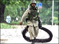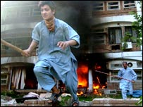 اسلام آباد کی لال مسجد سےملحقہ مدرسے حفصہ کی طالبات کی طرف سے اس سال جنوری میں قریبی لائبریری پر قبضے کے بعد سے دارالحکومت کی یہ قدیم ترین مسجد ذرائع ابلاغ کی توجہ کا مرکز رہی ہے۔اس واقعے کے بعد مسجد کے طلباء نے ایک گھر پر چھاپہ مار کر تین خواتین کو اغواء کر لیا تھا۔ گزشتہ مہینے طلباء نے ایک مساج پارلر سے چھ غیر ملکیوں سمیت نو افراد کو اغواء کر لیا تھا جنہیں بعد میں رہا کر دیا گیا۔ (ہارون رشید، مظہر زیدی، انتخاب امیر، آصف فاروقی، نیئر شہزاد، محمد اشتیاق) | اسی بارے میں لال مسجد: فائرنگ جاری، ہلاکتوں میں اضافہ03 July, 2007 | پاکستان لال مسجد کے حق میں مظاہرے03 July, 2007 | پاکستان خودکش حملوں کی دھمکی06 April, 2007 | پاکستان لال مسجد: خطبہ جمعہ کا متن06 April, 2007 | پاکستان لال مسجد گولڈن ٹمپل کی راہ پر06 April, 2007 | پاکستان لال مسجد کی ویب سائٹ پر پابندی07 April, 2007 | پاکستان لال مسجد انتظامیہ سے مذاکرات08 April, 2007 | پاکستان عدالتی بحران کمبل، لال مسجد خفیہ ہاتھ27 May, 2007 | پاکستان | ||||||||||||||||||||||||||||||||||||||||