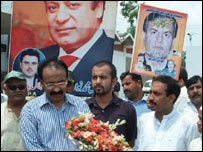 استقبال کے لیے آنے والے کارکنوں نے مسلم لیگ کے جھنڈوں کے علاوہ بینرز اور پلے کارڈز اٹھا رکھے تھے، جن میں سے بیشتر پر تحریر تھا ’ایک بہادر آدمی، ہاشمی ہاشمی‘۔ کارکنوں کی ایک بڑی تعداد نے سابق وزیر اعظم نواز شریف کی تصاویر بھی اٹھا رکھی تھیں اور بار بار ’گو مشرف گو‘ کا نعرہ فضا میں گونجتا تھا۔ جیل سے رہائی کے بعد جاوید ہاشمی کارکنوں کے جلوس میں داتا دربار اور علامہ اقبال کے مزار پر حاضری دینے کے بعد لاہور میں اپنے حلقے کا دورہ کرینگے۔ یاد رہے کہ جاوید ہاشمی سال دو ہزار دو کے عام انتخابات میں ملتان میں اپنے راویتی حلقے میں پیپلز پارٹی کے مخدوم شاہ محمود قریشی سے ہار گئے تھے اور شمالی لاہور کے حلقے 123-NA سے منتخب ہو کر رکن قومی اسمبلی بنے تھے۔ |