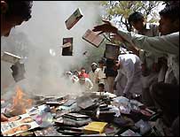 اس کے علاوہ مبینہ دھمکی آمیز خطوط ضلعی رابطہ افسر کے دفتر اور علاقے میں غیر حکومتی اداروں کو بھی موصول ہوئے ہیں۔ضلعی حکام کا کہنا ہے کہ وہ تفتیش کر رہے ہیں کہ یہ خطوط بھیجنے میں کون لوگ ملوث ہوسکتے ہیں تاہم انہیں ابھی تک اس سلسلے میں کسی قسم کی کوئی کامیابی حاصل نہیں ہوسکی ہے۔ مقامی لوگوں کا کہنا ہے کہ انتظامیہ کو معلوم ہے کہ مبینہ دھمکی آمیز خطوط بھیجنے میں کون لوگ ملوث ہیں مگر بقول ان کے انتظامیہ خوف کی وجہ سے ان لوگوں پر ہاتھ ڈالنے سے کتراتی رہی ہے۔ تاہم ایس ایس پی محمد اقبال نے ان الزامات کی تردید کی ہے۔ ضلع سوات کالعدم نفاذ شریعت محمدی کا گڑھ سمجھا جاتا ہے اور یہاں پر گزشتہ دو سال سے ایک مقامی دینی عالم غیر قانونی ایف ایم اسٹیشن پر مبینہ طور پر بچوں کو پولیو کے قطرے پلانے، لڑکیوں کی تعلیم، سی ڈی فلموں کی فروخت کے خلاف تقاریر کر رہے ہیں۔حکومت نے چند ماہ قبل ان کے ساتھ معاہدہ کرکے انہیں غیر قانونی ایف اسٹیشن چلانے کی اجازت اس شرط پردی کہ وہ مذکورہ موضوعات پر بات نہیں کریں گے لیکن مقامی لوگوں کا کہنا ہے کہ اس معاہدے پر مکمل طور پرعملدرآمد نہیں کیا جارہا ہے۔ لال مسجد کے خلاف آپریشن کے خلاف مولانا فضل اللہ نے ہزاروں لوگوں کے ایک احتجاجی اجتماع سے خطاب کے دوران آپریشن بند نہ کرنے کی صورت میں مبینہ طور پر’جہاد‘ کا اعلان کیا تھا جس کے بعد ملاکنڈ ڈویژن میں خودکش حملوں اور بم دھماکوں میں اضافہ دیکھنے میں آیا تھا۔ حکومت نے صورتحال سے نمٹنے کے لیے وہاں فوج کو تعینات کر دیا تھا تاہم ایم ایم اے کی صوبائی حکومت میں شامل جماعت اسلامی اور جمیعت علماء اسلام کے درمیان اختلافات کی وجہ سے فوج کو کئی مقامات سے ہٹا کر بیرکوں تک محدود کردیا گیا تھا۔مولانا فضل اللہ ان تمام واقعات میں ملوث ہونے سے انکار کرتے ہیں۔ |