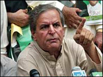 پاکستان میں حزب اختلاف کی جماعتوں سے تعلق رکھنے والے متعدد رہنماؤں کو پولیس نے حراست میں لے لیا ہے جبکہ کئی رہنماؤں کی حراست کے لے دارالحکومت اسلام آباد میں چھاپے مارے جا رہے ہیں۔ اطلاعات کے مطابق پولیس نے ہفتے کی رات گئے پاکستان مسلم لیگ (ن) کے رہنماؤں راجہ ظفر الحق اور مخدوم جاوید ہاشمی، جمعیت علماء اسلام کے حافظ حسین احمد اور جماعت اسلامی کے اسلام آباد سے رکن قومی اسمبلی میاں اسلم شامل ہیں۔ پاکستان مسلم لیگ (ن) کے سیکریٹری اطلاعات احسن اقبال نے بی بی سی سے بات کرتے ہوئے ان قائدین کی حراست کی تصدیق کی اور دعویٰ کیا کہ پولیس جماعت اسلامی کے امیر قاضی حسین احمد اور تحریک انصاف کے سربراہ عمران خان کی گرفتاری کے لیے بھی چھاپے مار رہی ہے۔ انہوں نے کہا کہ ان کی اطلاعات کے مطابق یہ دونوں رہنما روپوش ہو گئے ہیں۔ احسن اقبال نے کہا کہ وہ بھی اس وقت روپوش ہیں۔ بین الاقوامی خبررساں اداروں کے مطابق مخدوم جاوید ہاشمی کو ارکانِ پارلیمنٹ کے لیے مخصوص پارلیمنٹ لاجز سے گرفتار کیا گیا اور ان کی گرفتاری کے احکامات نقص امن کی دفعہ کے تحت جاری کئے گئے۔ فرانسیسی خبررساں ادارے اے ایف پی کے مطابق پولیس کے پاس کم از کم حزب اختلاف کی جماعتوں سے تعلق رکھنے والے پینتیس رہنماؤں کو حراست میں لینے کے احکامات ہیں۔ واضح رہے کے حزب اختلاف کی جماعتوں نے صدر مشرف کے دوبارہ صدر کے انتخاب میں حصہ لینے کے خلاف پارلیمان سے انتیس ستمبر کو مستعفی ہونے کا اعلان کر رکھا ہے۔ | اسی بارے میں ’پیرول نہیں بحالی جمہوریت‘23 December, 2006 | پاکستان جمہوریت اور انصاف کی فتح ہے03 August, 2007 | پاکستان شناختی کارڈ کیخلاف درخواست06 August, 2007 | پاکستان نواز واپسی کیخلاف سرگرمیوں کا الزام08 September, 2007 | پاکستان | ||||||||||||||||||||||||||||||||||||||||