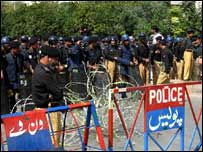 ضلعی بار ایسوسی ایشن کے ارکان نے پی ایم جی چوک میں دھرنا دیا تاہم پولیس کی رکاوٹوں کی وجہ سے وہ مال روڈ پر نہیں آسکے۔ ہائی کورٹ بار نے جی پی او چوک میں مظاہرہ کیا جس میں تحریک انصاف کے کارکنوں نے صدر مشرف اور وزیراعلیٰ پنجاب کی تصویروں والے بینرز اور پوسٹر جلائے۔ لاہور بار کے صدر سید محمد شاہ نے سنیچر کو عدالتیں بند کیے جانے کی مذمت کی ہے۔ | اسی بارے میں کوئٹہ میں مظاہرہ اور شٹرڈاؤن ہڑتال06 October, 2007 | پاکستان وکلاء کی ریلیاں، ملی جلی ہڑتال06 October, 2007 | پاکستان آدھی اسمبلی میں مشرف کی حمایت06 October, 2007 | پاکستان صدارتی الیکشن، احتجاج کا اعلان06 October, 2007 | پاکستان غیر سرکاری نتائج، مشرف کامیاب06 October, 2007 | پاکستان صدارتی الیکشن پولنگ، فیصلہ بعد میں06 October, 2007 | پاکستان انتخاب وقت پر، نتائج بعد میں05 October, 2007 | پاکستان سولہ کروڑ عوام ہمارے ساتھ:وجیہہ 05 October, 2007 | پاکستان | ||||||||||||||||||||||||||||||||||||||||